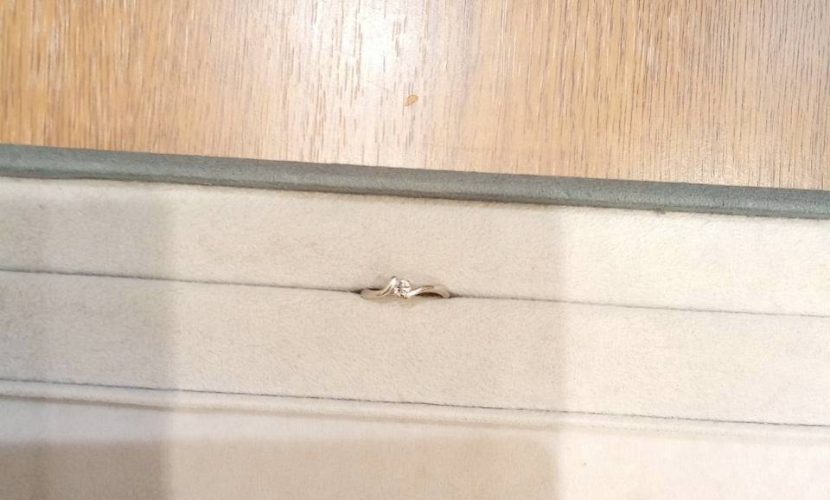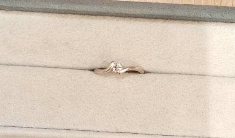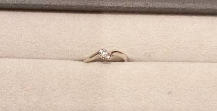 流れるようなラインが美しいリングですが、ダイヤを留める爪が2点留めのためゆるみやすく、1〜2年に1度は修理しなければならないとのことです。