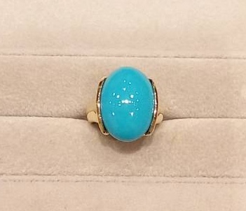 目の覚めるようなターコイズブルーが素敵なリング。