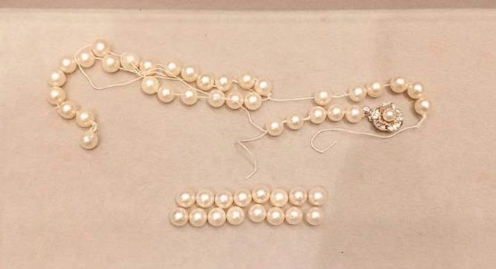 お嬢様にお譲りになったパールネックレスですが、切れて珠がバラバラになってしまっています。